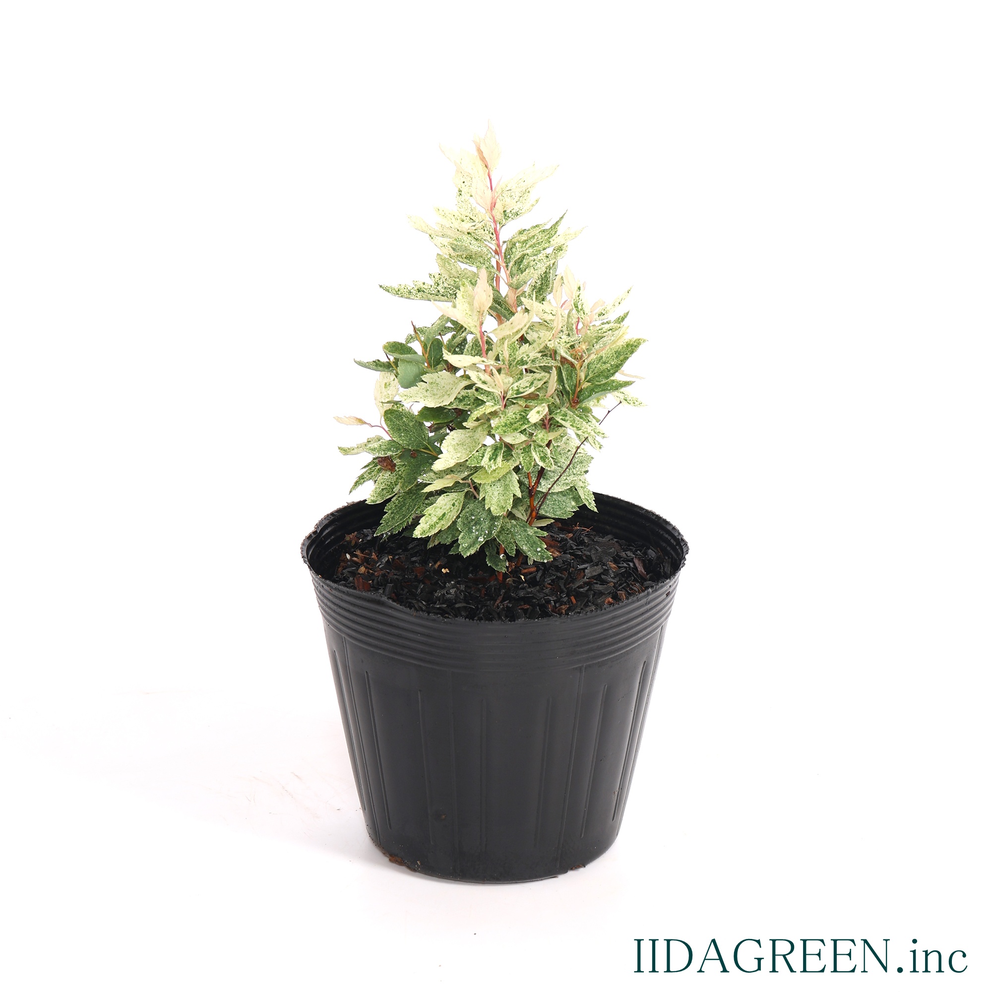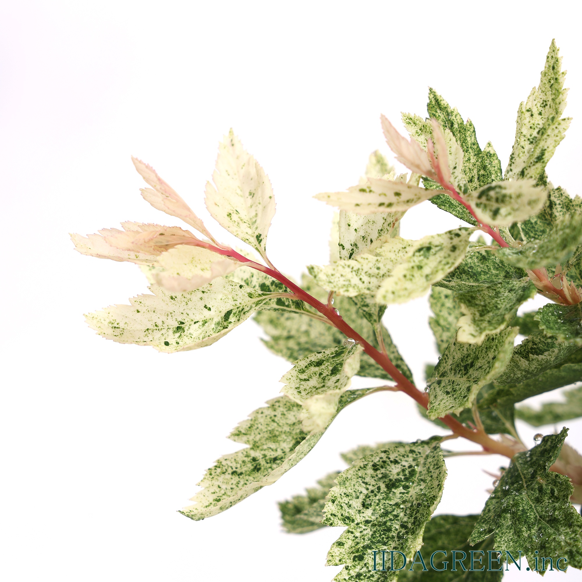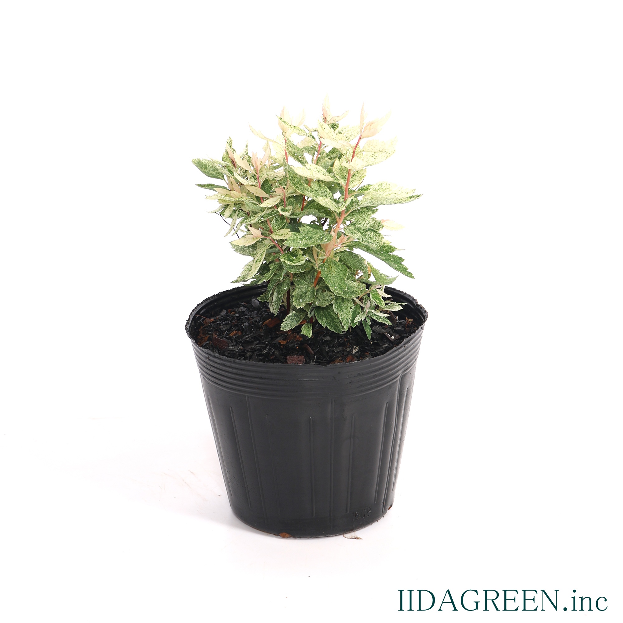 特徴と魅力 古くから親しまれているコデマリの園芸品種で、新芽の時期にピンクや白の斑が入り、雪が降ったような繊細な模様が葉全体に広がるのが最大の特徴です。成長とともに斑の色味が落ち着き、爽やかな白斑へと変化していく様子は、お庭に明るさと軽やかさをもたらしてくれます。 葉の色味や質感が魅力で、単体での鑑賞はもちろん、寄せ植えのアクセントとしても空間を華やかに演出します。また、しなやかに伸びる枝を活かして、足元をふんわりと覆うようなグランドカバー的な使い方もでき、庭の主役にも脇役にもなる汎用性を持っています。