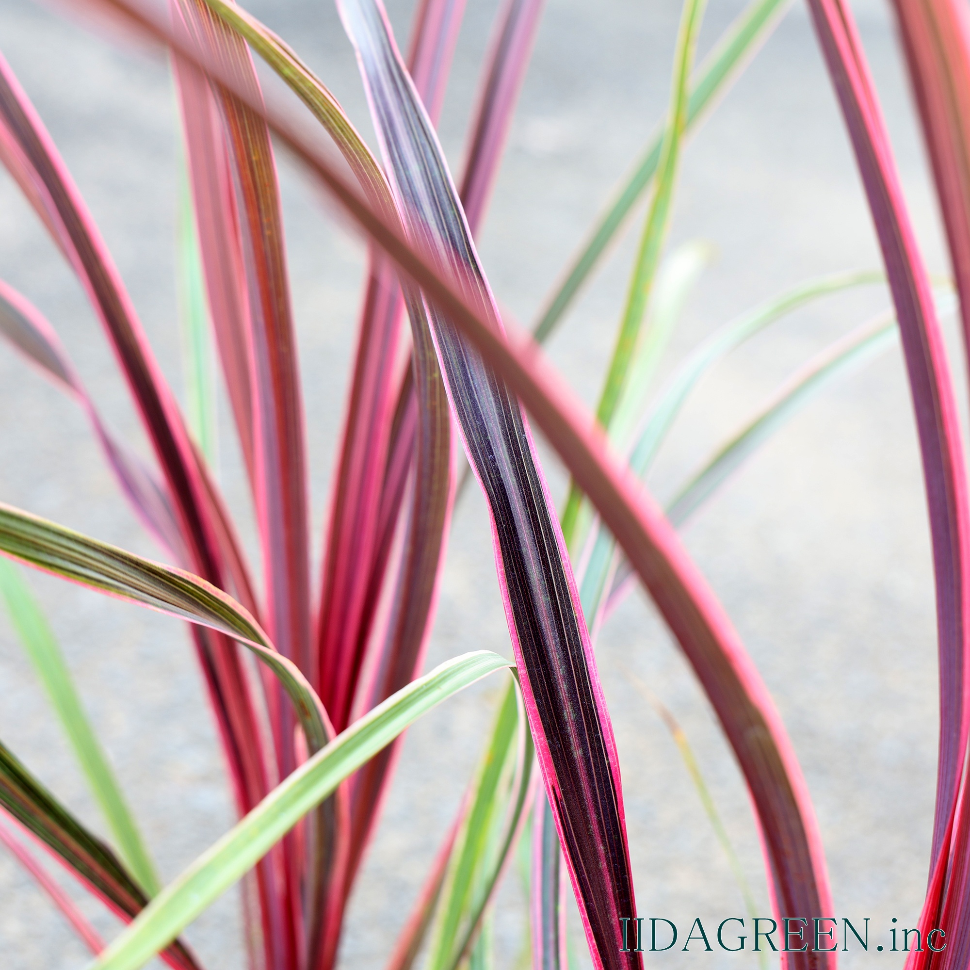 特徴と魅力 ニュージーランドを原産とするコルジリネの園芸品種で、成長とともに劇的に葉色が変化していく様子が最大の特徴です。新葉は明るいピンクから赤色で展開し、次第に落ち着いたブロンズ色から緑色へと移ろい、複数の色が混ざり合うドラマチックな色彩を楽しめます。 シャープでモダンな葉姿は存在感があり、単体での鑑賞はもちろん、寄せ植えのアクセントとしてもお庭の雰囲気をスタイリッシュに引き締めてくれます。