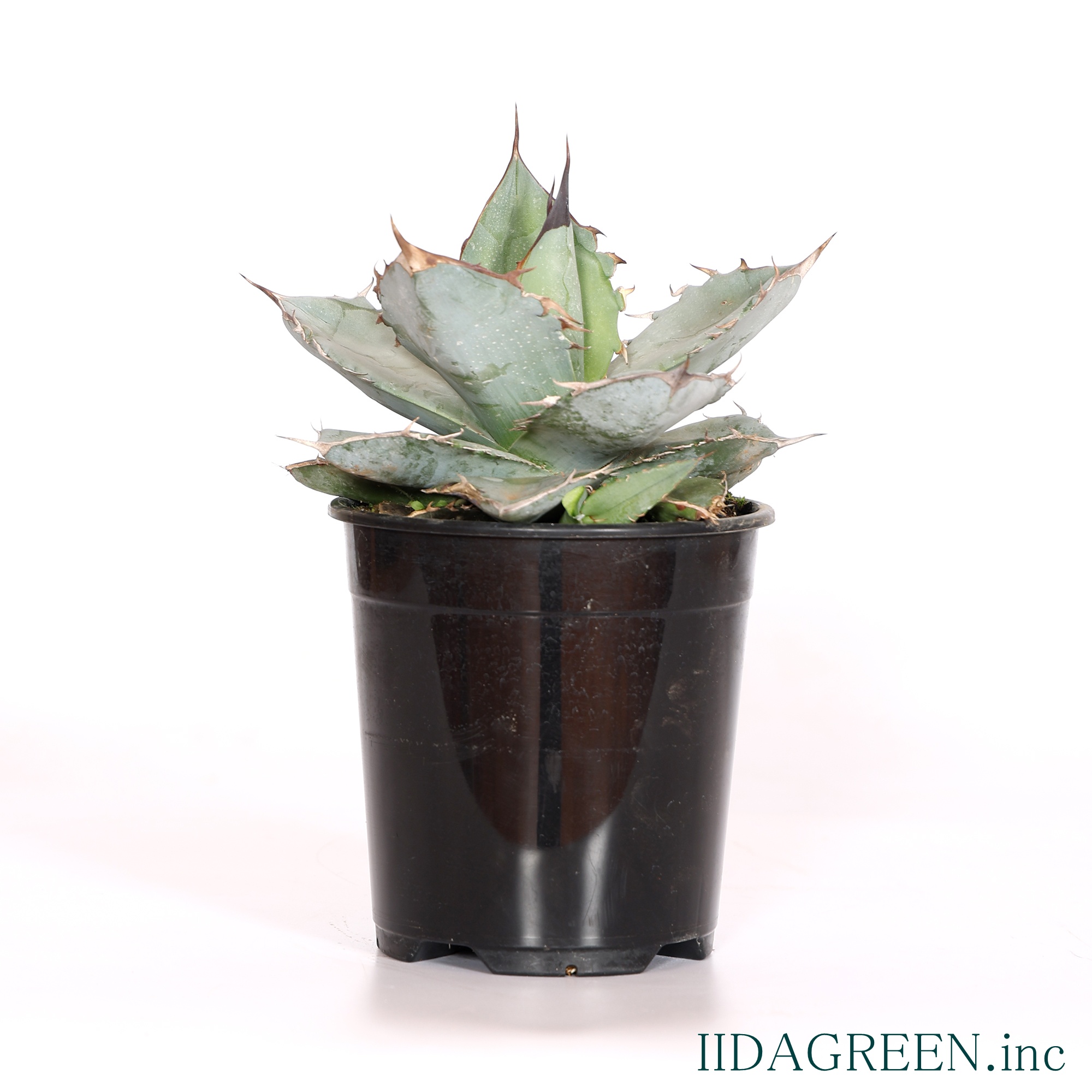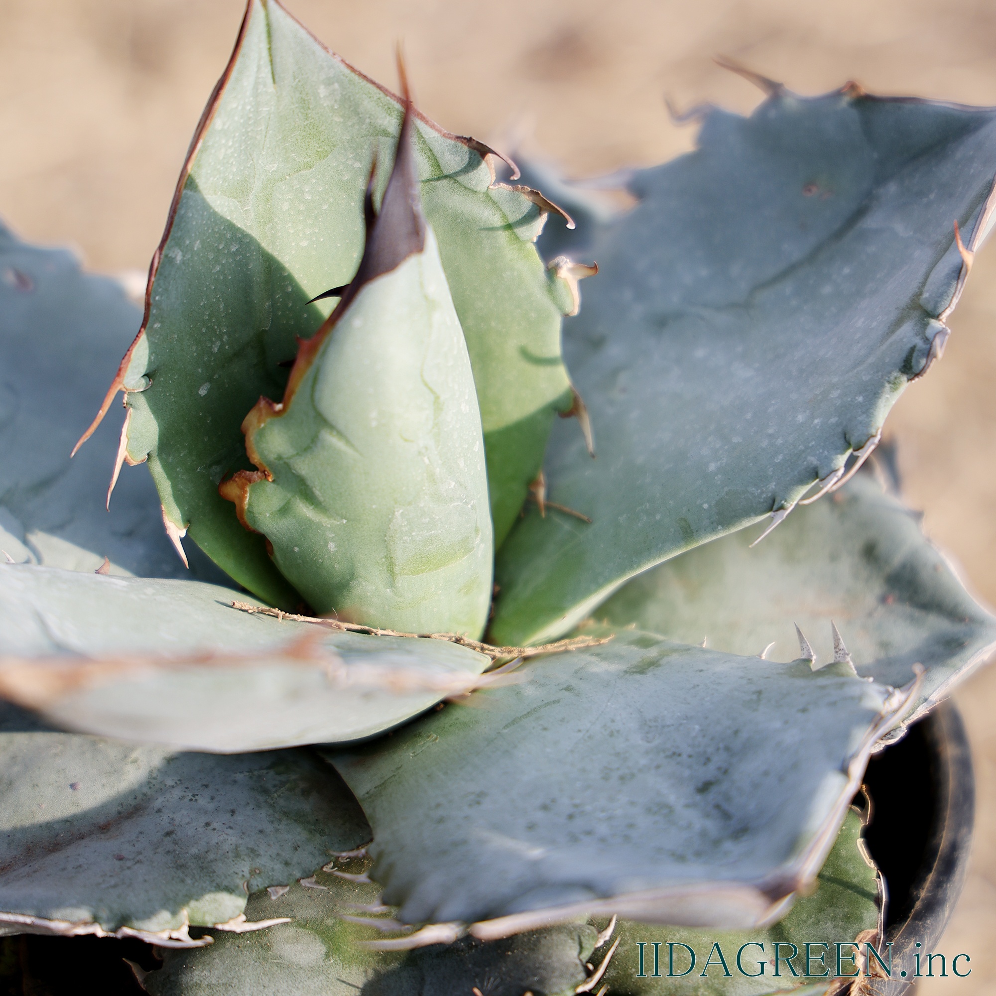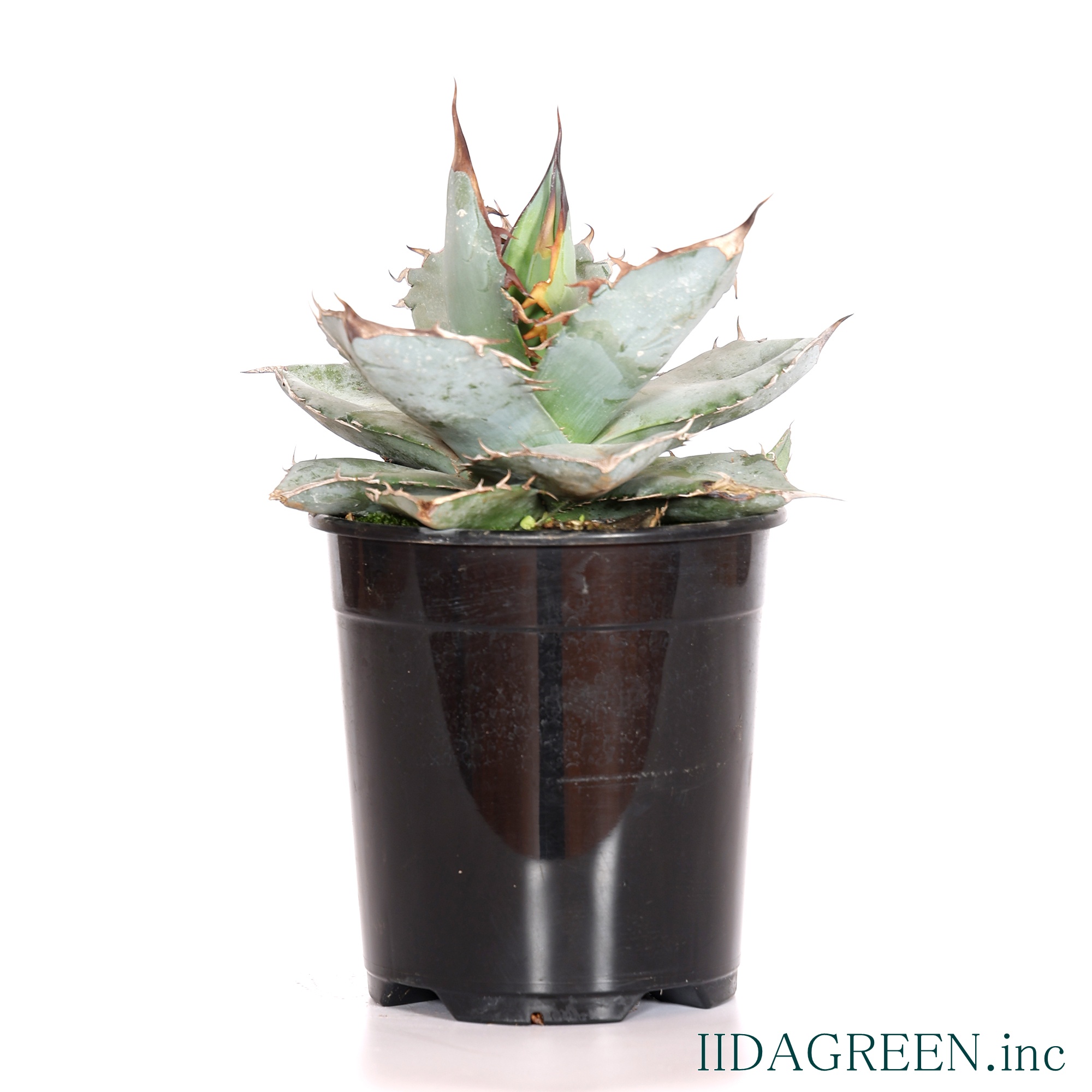 【特徴と魅力】 アガベの中でも絶大な人気を誇る、メキシコ原産の多肉植物です。肉厚で鋭い棘(ノギ)を持つ葉がロゼット状に展開し、その野性的で力強いフォルムは「リビングのオブジェ」とも称されます。品種や個体によって棘の形や葉の幅が異なり、自分だけの一鉢を育てるコレクション性の高さも大きな魅力です。