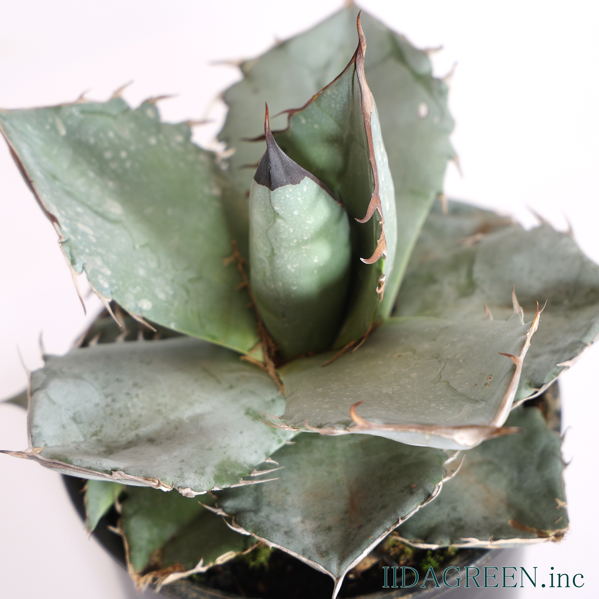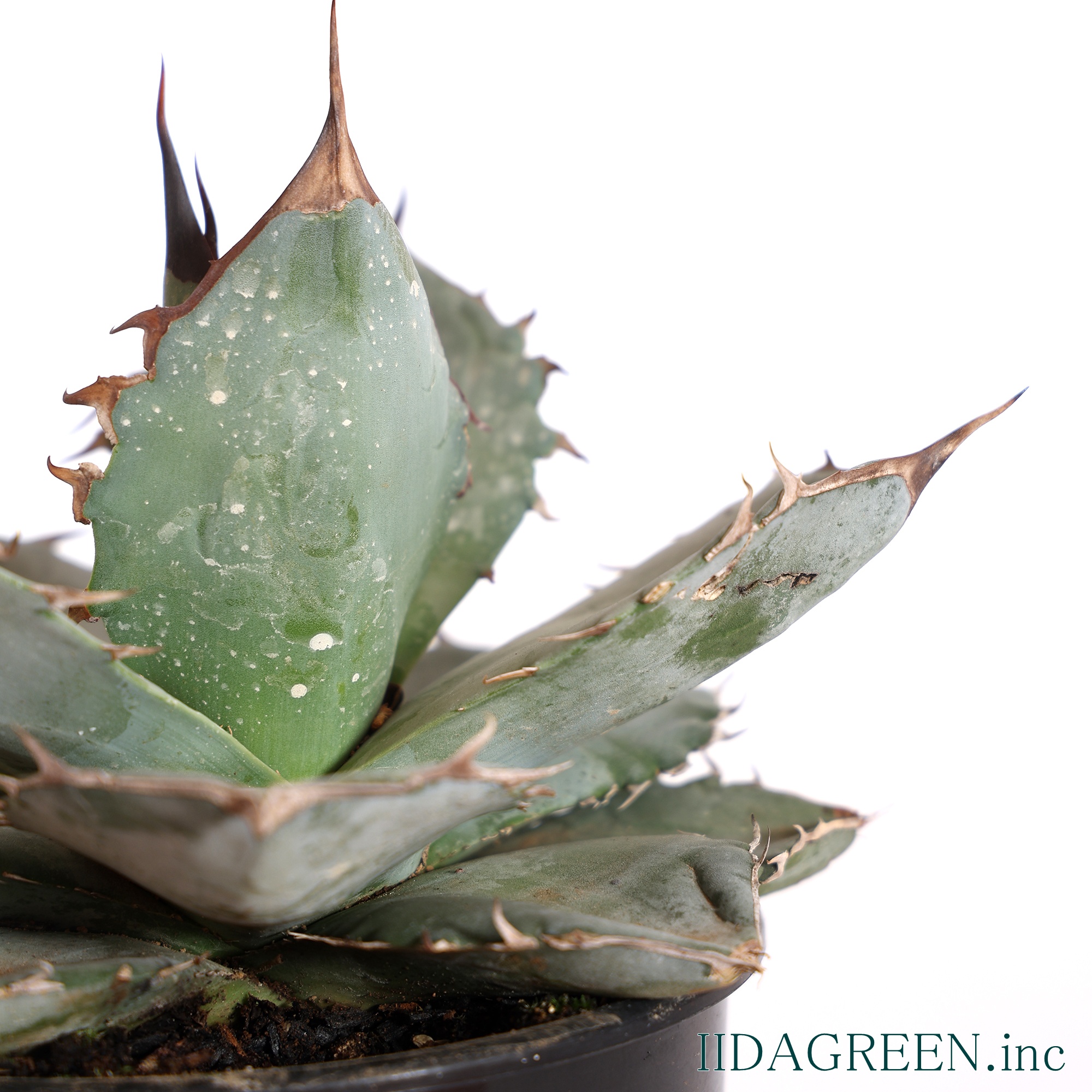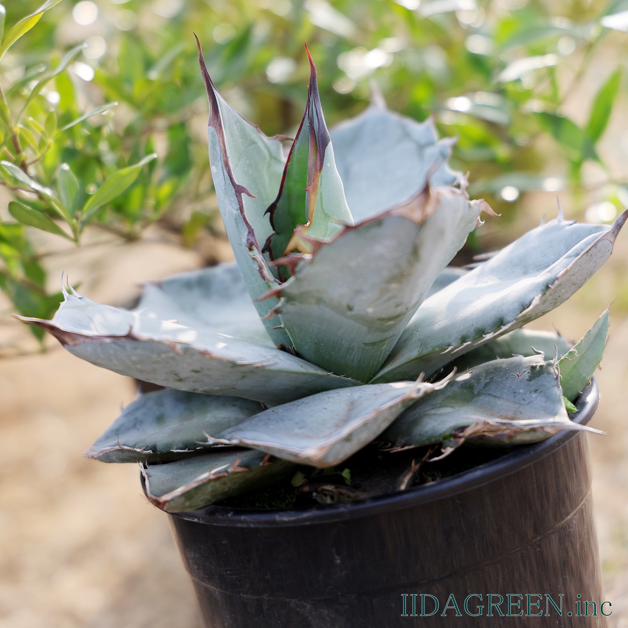 【特徴と魅力】 アガベの中でも絶大な人気を誇る、メキシコ原産の多肉植物です。肉厚で鋭い棘(ノギ)を持つ葉がロゼット状に展開し、その野性的で力強いフォルムは「リビングのオブジェ」とも称されます。品種や個体によって棘の形や葉の幅が異なり、自分だけの一鉢を育てるコレクション性の高さも大きな魅力です。