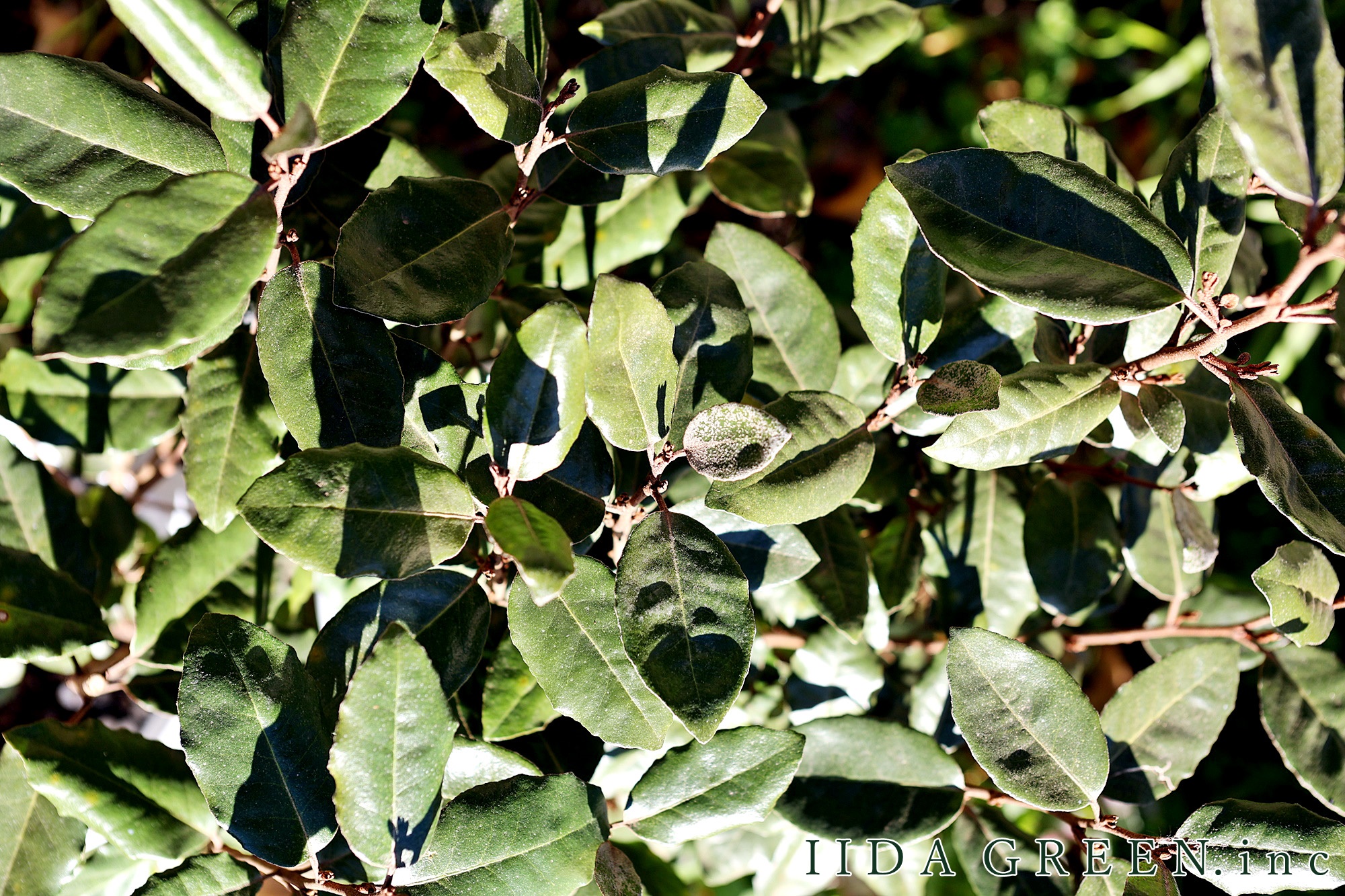 乾燥や潮風に強く、光沢感のある艶のある葉が美しい、強い対候性のグミ科の低木です。