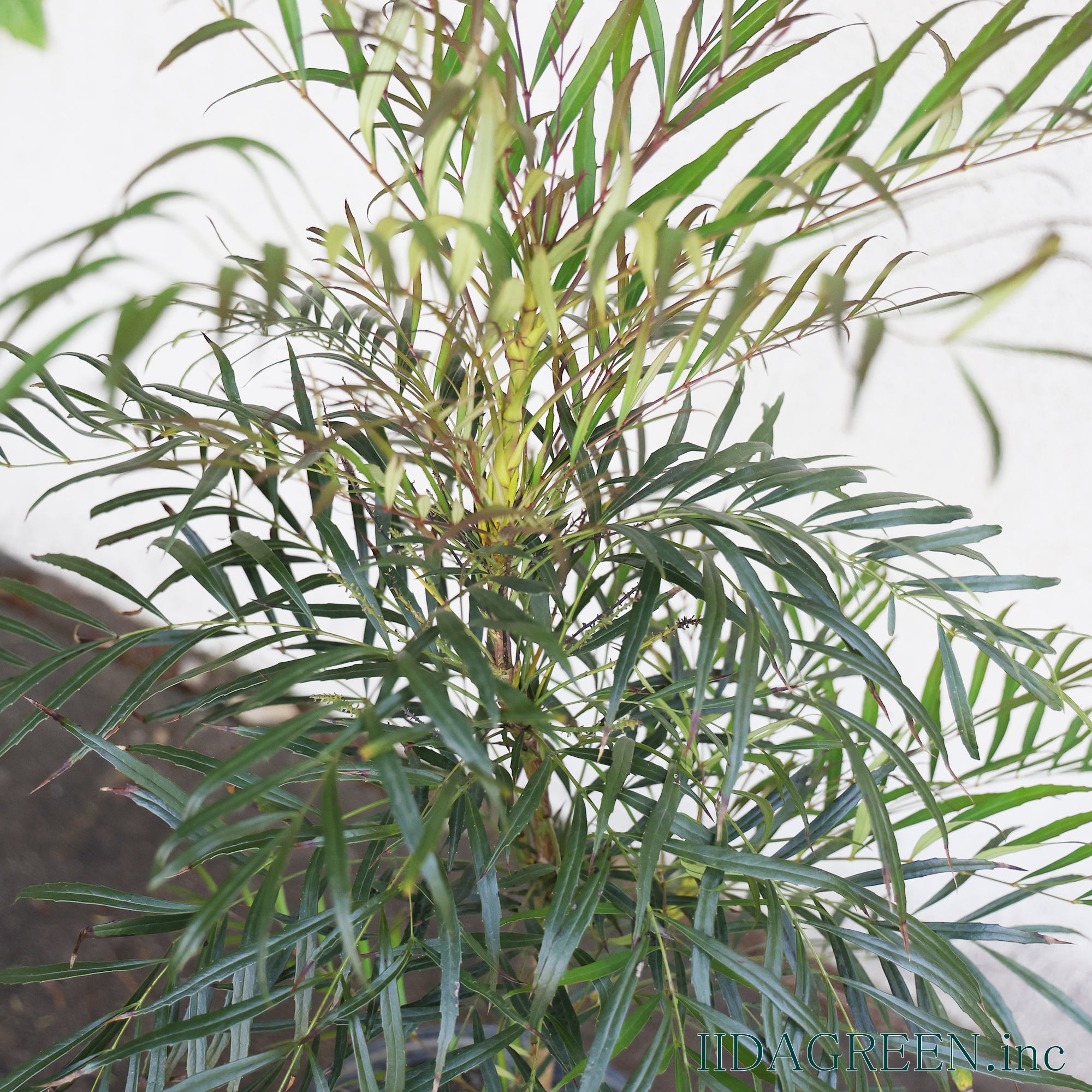 特徴と魅力 中国を原産とするマホニア(ヒイラギナンテン)の仲間で、従来のイメージを一新するような細くしなやかな葉が特徴です。「セイリュウ(清流)」の名が示す通り、涼しげで柔らかな質感を持っており、名前に違わずトゲがないため、小さなお子様やペットのいるご家庭でも安心して取り入れられます。 そのスタイリッシュな姿から、モダンな庭園のアクセントや鉢植えのアイポイントとして非常に人気があります。
