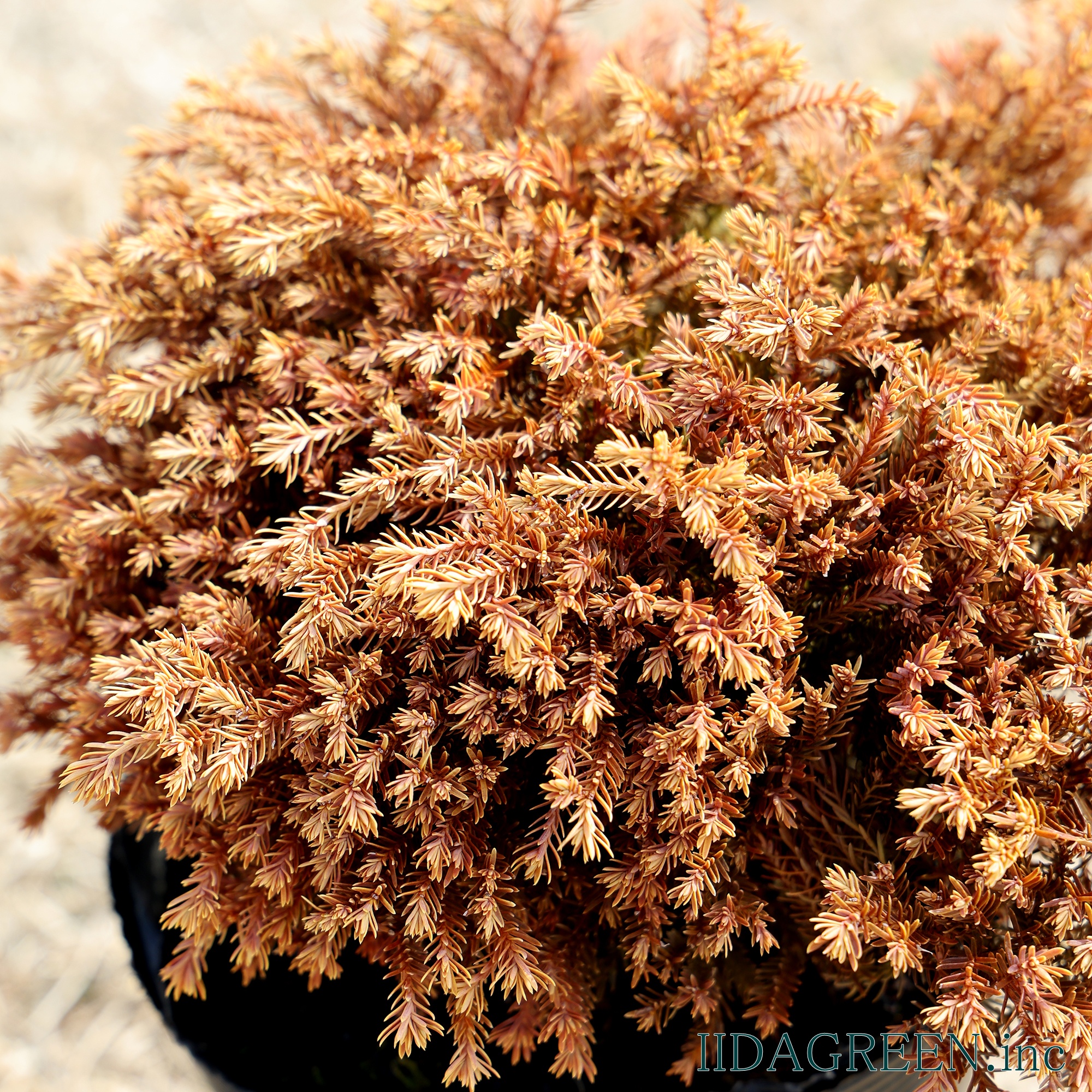 特徴と魅力】 その名の通り、輝くような黄金色の葉が美しい常緑針葉樹です。春から夏にかけては鮮やかなライムゴールド、冬には深みのあるオレンジゴールドへと劇的に葉色が変化し、一年を通して庭に温かな彩りを与えてくれます。針葉樹特有のチクチク感が少なく、手触りが柔らかいのも魅力。自然に丸く整うコンパクトな樹形は、モダンな庭のアクセントや、寄せ植えの主役として非常に人気があります。